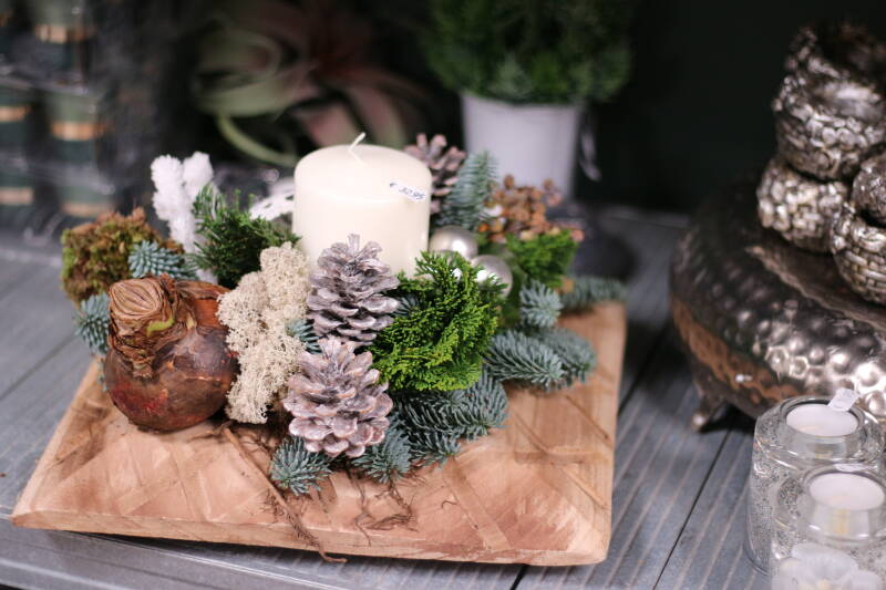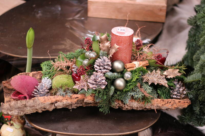 Kerststuk op boomschors €39,95